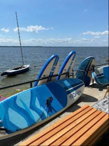 Przystań Brysiówka specjalizuje się w wypożyczalni sprzętu do sportów wodnych oraz zapewnia relaks w saunie.